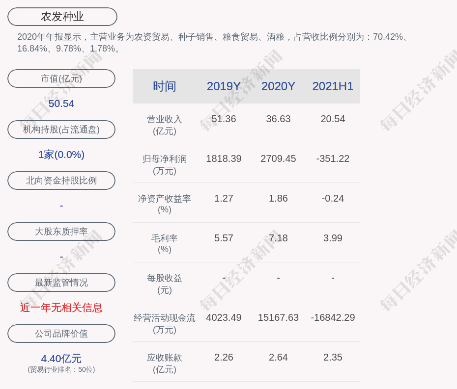 2020年年報(bào)顯示,農(nóng)發(fā)種業(yè)的主營(yíng)業(yè)務(wù)為農(nóng)資貿(mào)易、種子銷售、糧食貿(mào)易、酒糧,占營(yíng)收比例分別為:70.42%、16.84%、9.78%、1.78%。