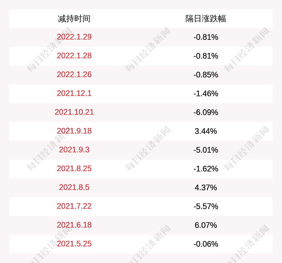 3. 運達股份上次發(fā)布減持公告是2022年01月29日,第二個交易日下跌0.81%,運達股份近一年共發(fā)布13次減持類公告。