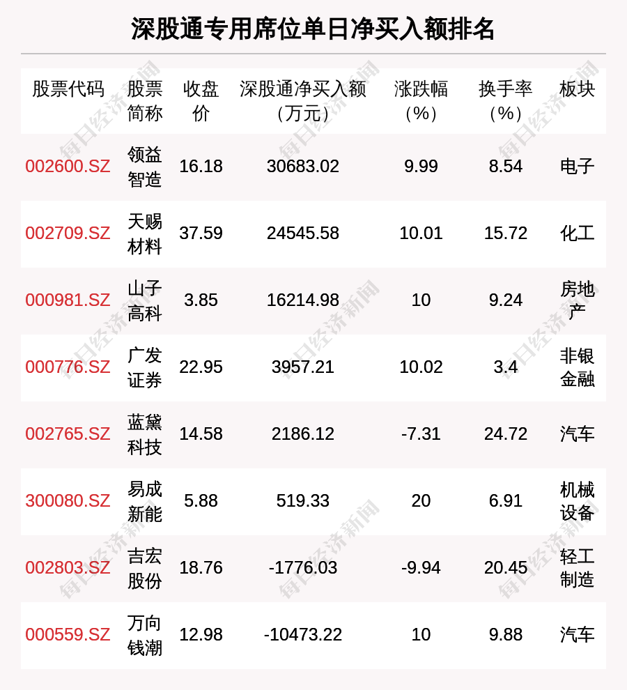 在龍虎榜中,涉及深股通專用席位的個股有8只,領(lǐng)益智造的深股通專用席位凈買入額最大,凈買入3.07億元。