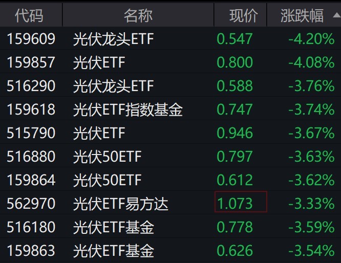 受盤面影響,光伏相關(guān)ETF跌超3%。