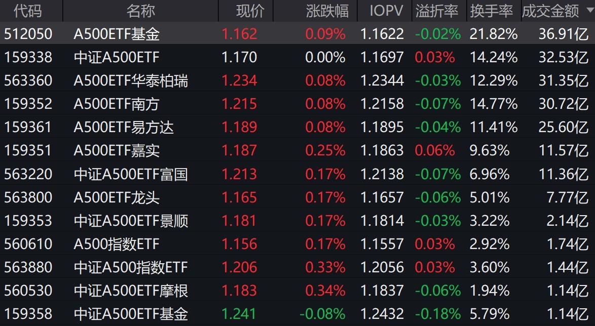 市場(chǎng)早盤震蕩拉升,中證A500指數(shù)上漲0.19%。