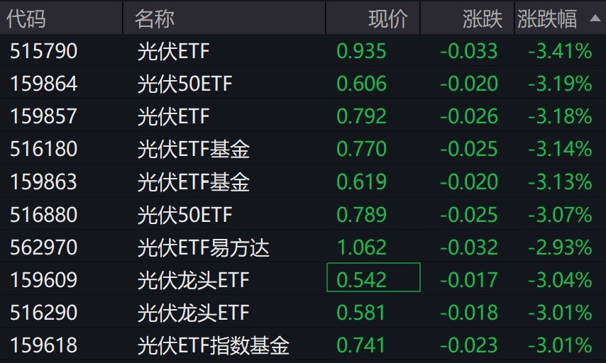 受重倉股調(diào)整影響,光伏相關(guān)ETF普跌逾3%。