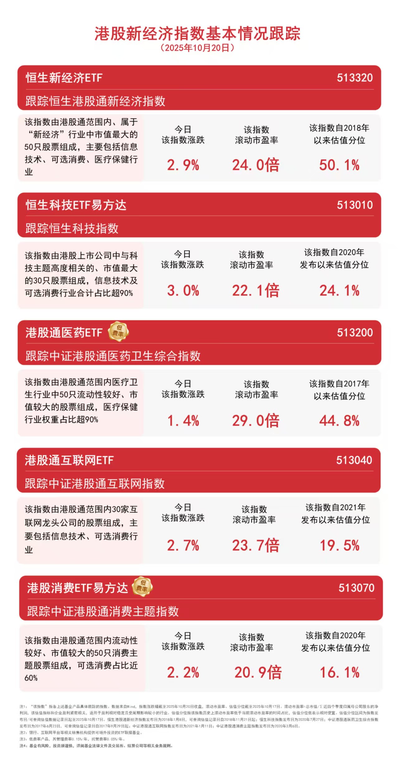 今日,港股科技與互聯(lián)網(wǎng)股攜手反彈,民航股大漲,新消費(fèi)概念股表現(xiàn)較弱。截至收盤,恒生科技指數(shù)上漲3.0%,恒生港股通新經(jīng)濟(jì)指數(shù)上漲2.9%,中證港股通互聯(lián)網(wǎng)指數(shù)上漲2.7%,中證港股通消費(fèi)主題指數(shù)上漲2.2%,中證港股通醫(yī)藥衛(wèi)生綜合指數(shù)上漲1.4%。近期資金持續(xù)涌入港股科技相關(guān)ETF,Wind數(shù)據(jù)顯示,截至上周五,恒生科技ETF易方達(dá)(513010)近一個(gè)月“吸金”超40億元,凈流入額位居同標(biāo)的ETF第一。